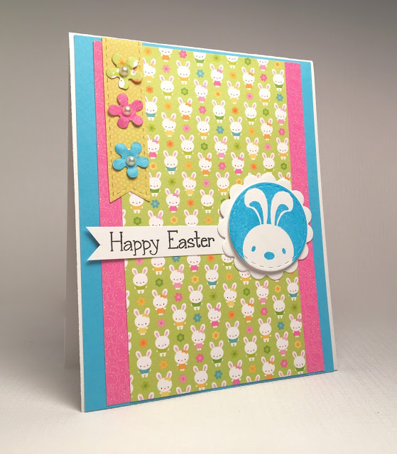 Easter is just around the corner so I got out some fun bright papers and colors to work with today! Here is the festive Easter card I made for you.