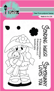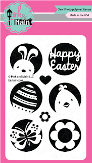 - Stamp the bunny (Pink and Main Easter Icons) in blue ink and cut out with 1 1/2 inch stitched circle (Pink and Main Stitched Circle Die Set)