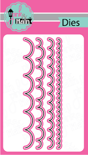 - Cut a white oval using the Pink and Main Stitched Oval Die set and cut a 1 1/2 x 4 inch piece of DP from the the Pink and Main Pumpkin Spice pad. Then use the Pink and Main Scallop Border die