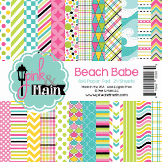 - Start with an white A2 card base cut a slightly smaller piece of yellow chevron DP from the Pink and Main Beach Babe paper pad. Then cut a piece of 4 x 5 1/4 piece of red card stock and run it through the embossing folder of your choice
