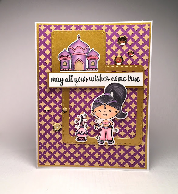 - Stamp the image from the New Genie Girl Stamp set color with copics and cut with the coordinating dies