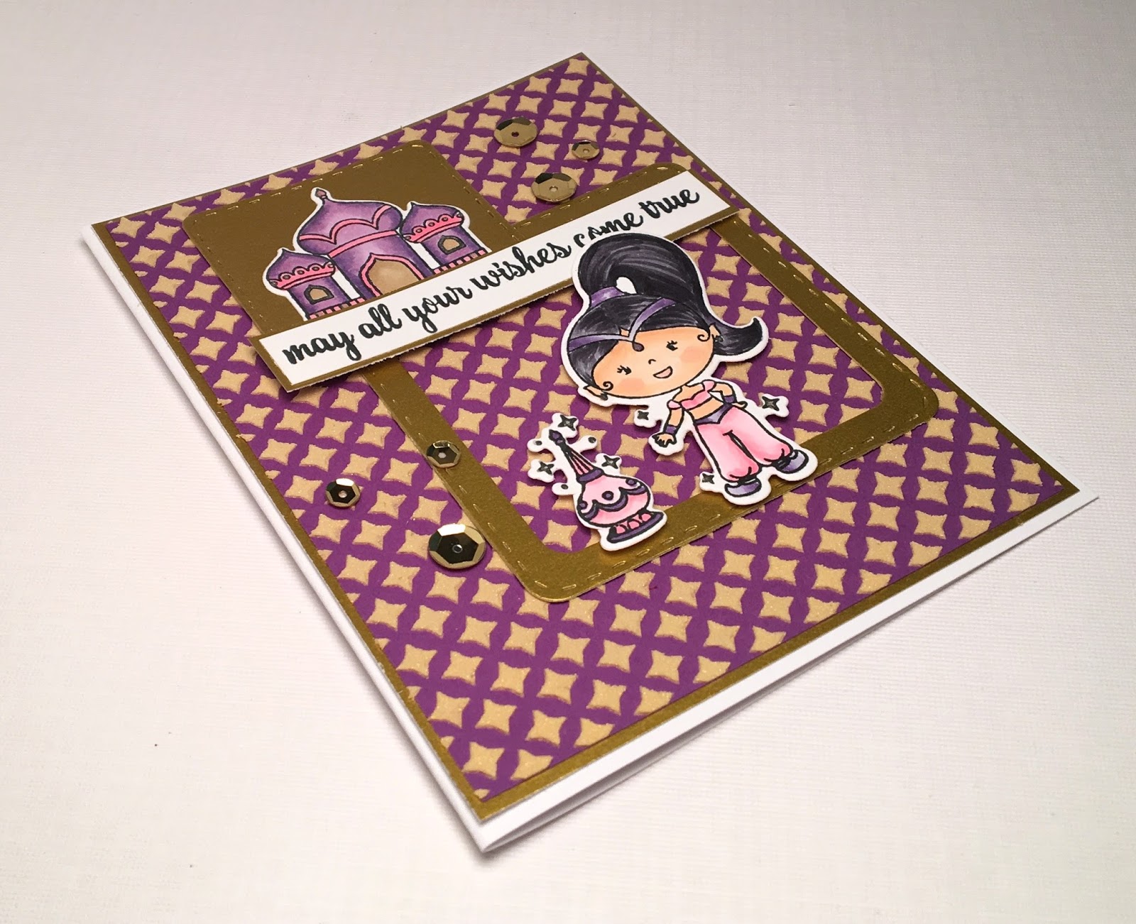 - Stamp the image from the New Genie Girl Stamp set color with copics and cut with the coordinating dies