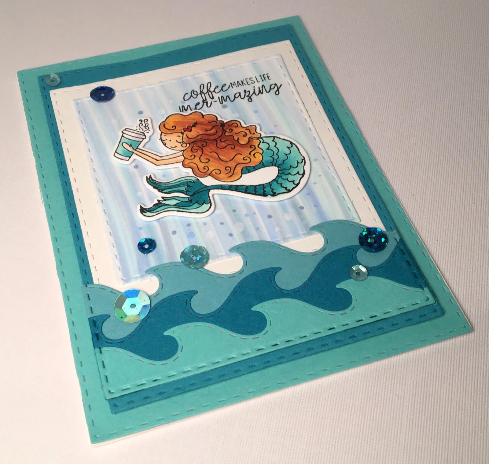 Woo hoo – a new release! Sounds MERMAIZING!! 😉 Sorry, couldn’t help myself. Wonderful card – love your red headed mermaid.