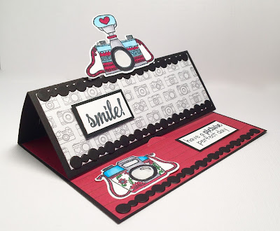 I decide to showcase these darling little cameras by doing a fancy fold easel card. But really there is nothing difficult with this fold!
