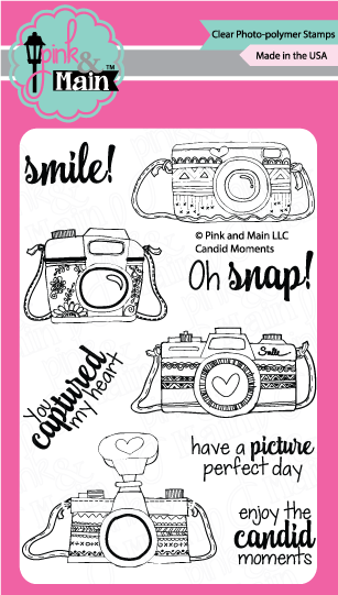 I am using the new stamp called Candid Moments! It is a fantastic set filled with fun little cameras and adorable sentiments!
