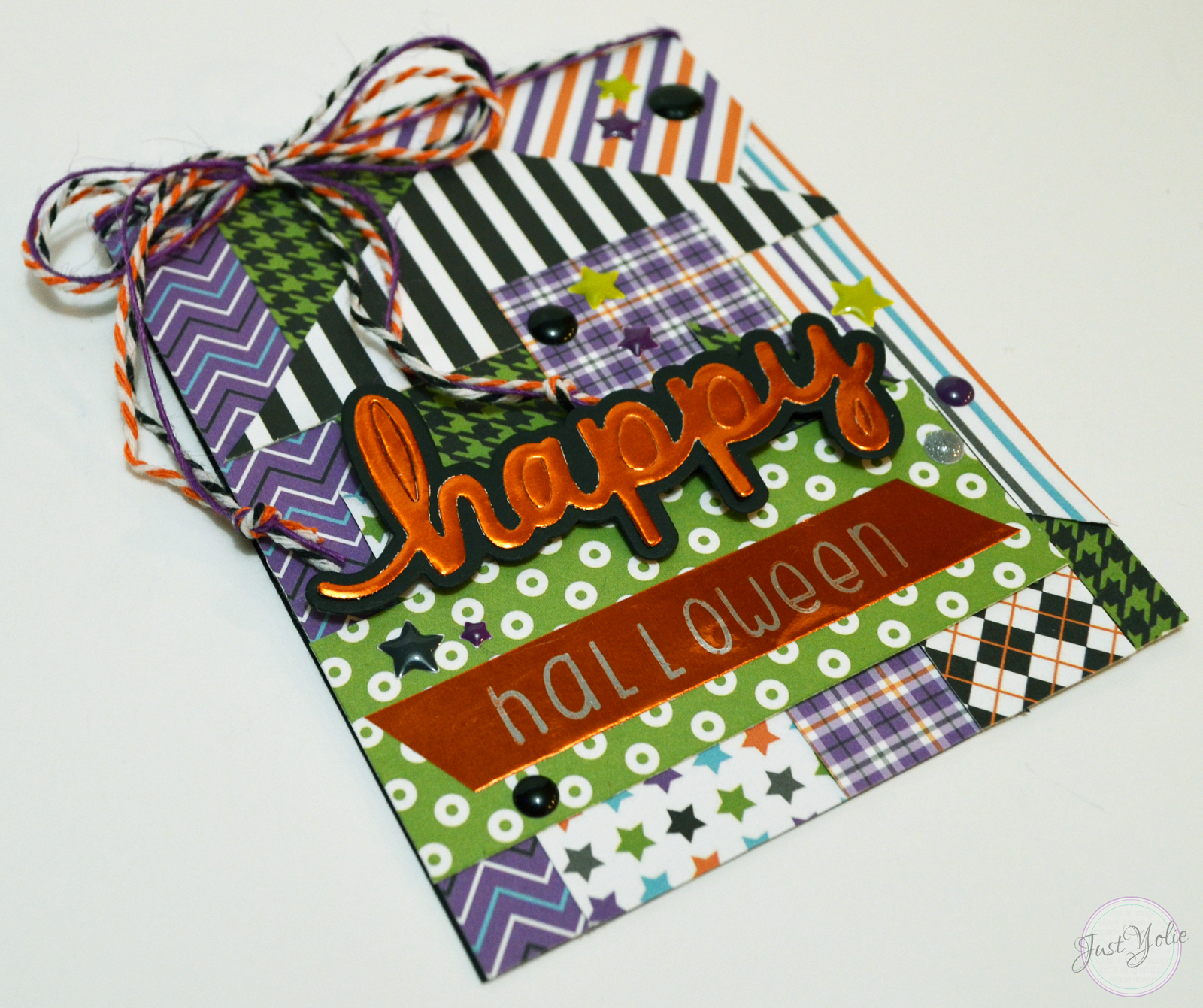 Super fun patchwork design! I love all of the fun patterns and colors! Great Halloween card!