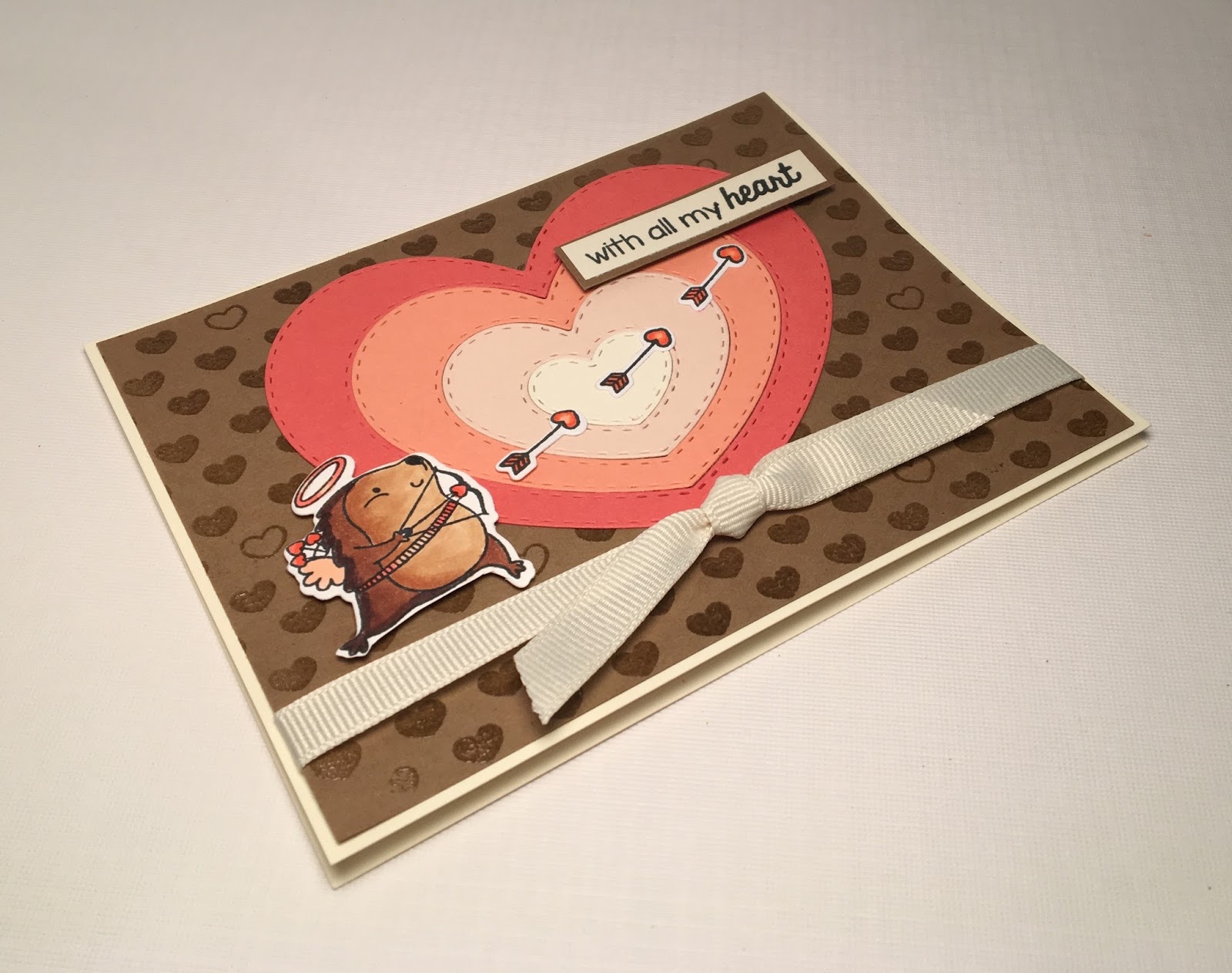 I am making a ton of Valentine’s Day cards and I just am in love with the Hedgehug set, Polka Heart background stamp and Double Stitched Heart Dies!