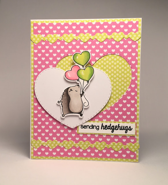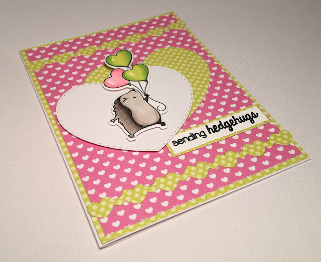 - Using the coordinate dies cut out the hedge hog and stamp the sentiment and layer it on the green polka dot paper