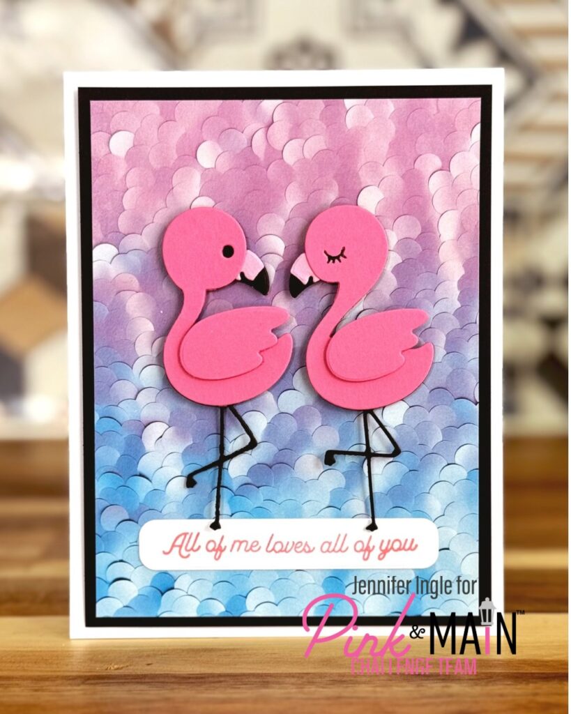 Jennifer picked the perfect pink animals for her Color Challenge card, using The Three Flamingos Dies! She paired them with the Mermaid Seas Paper Pack, which has lots of pink options throughout.