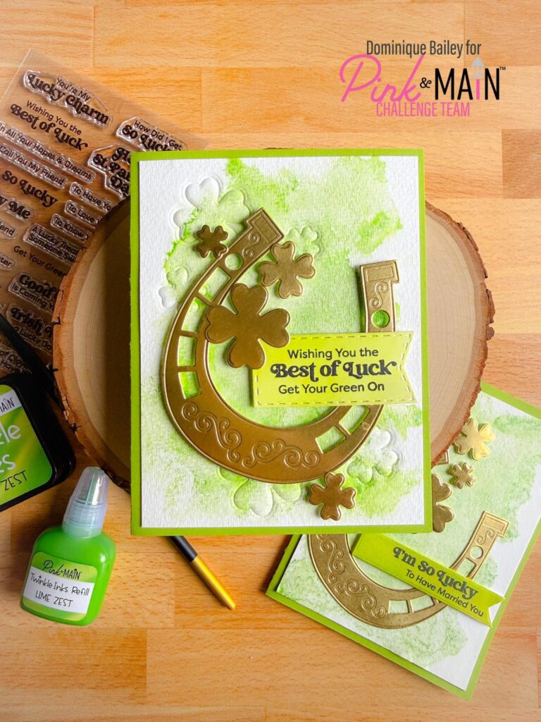 Dominique added wonderful texture with the Lucky Horeseshoe Dies. The horseshoe itself has built in texture from the embossing the die adds. And Dominique also added texture but partially cutting the shamrocks into her background! You can achieve this look by using the embossing mat that comes with most die cutting machines.
