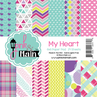 - Cut out a slightly smaller piece of Pink and Main plaid DP from the My Heart and glue it to the purple card stock