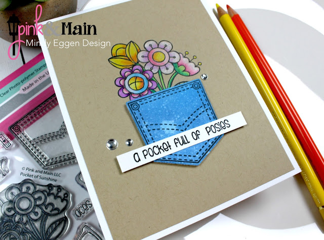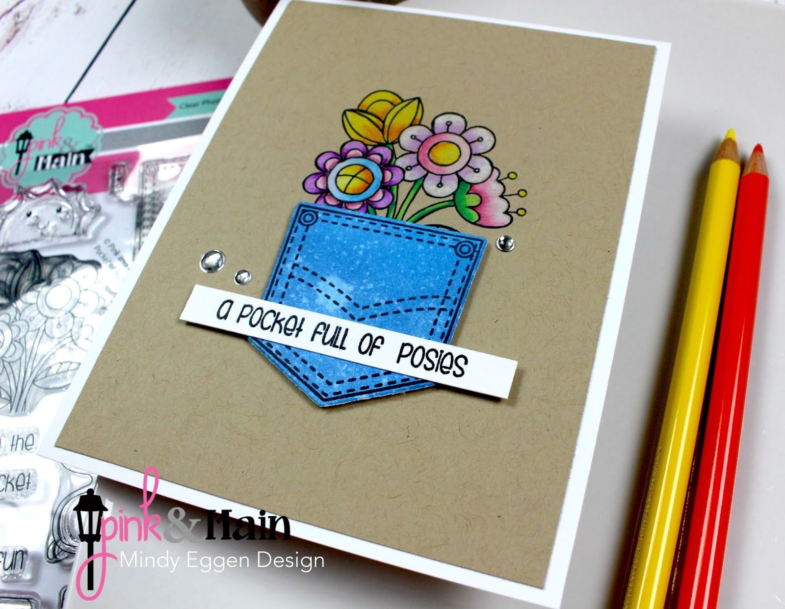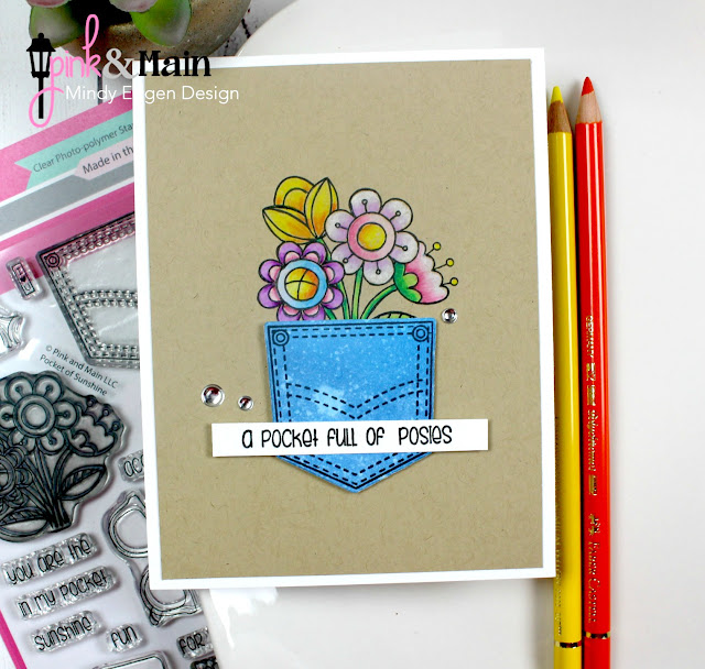 I love that you can add different images to this pocket and really get creative! I was drawn to the flowers right away because they are so unique looking! I finally took the dive and dug out some colored pencils for this as I really like how they look on kraft cardstock.