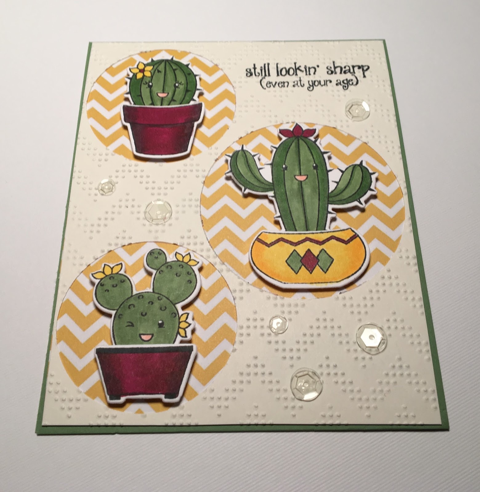 4. Use coordinating Sticky Note dies to cut them out.  Pop the cacti to the card as pictured