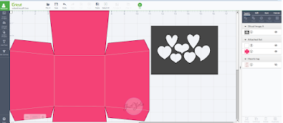 I used my Cricut Explore Air to cut the box and to design my own stencil. This is a simple box, you can easily create your own out one sheet of 12″x12″ paper. To create the stencil use heart die or a paper punch.