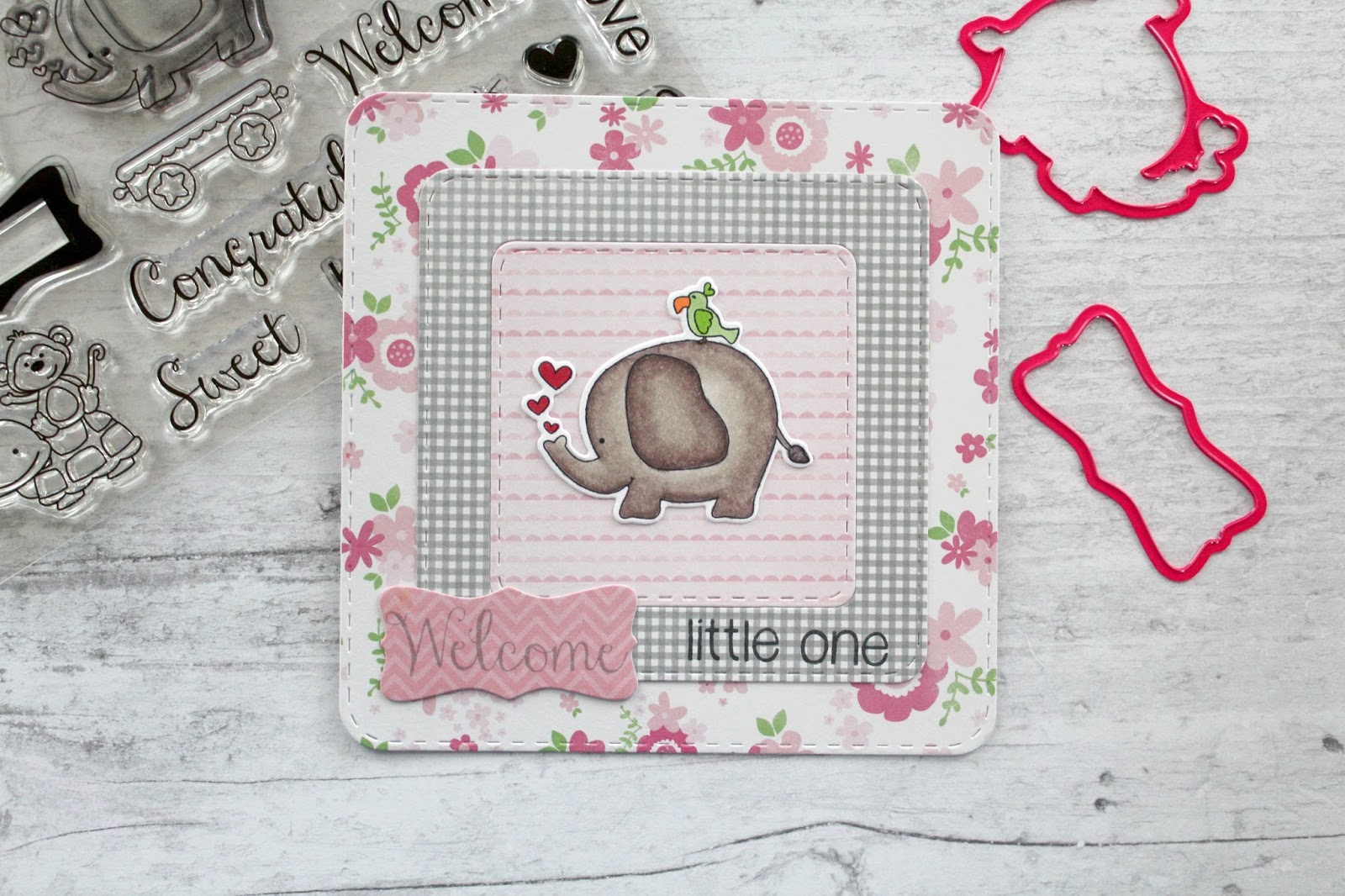 The elephant image can be used on a boy card, by replacing the pinks with blues!